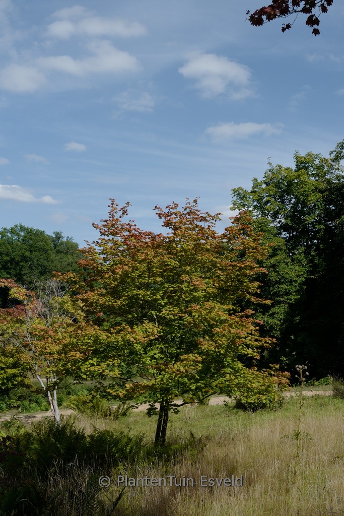 dicht vertakte struiken vine-maple, herfstkleur van deze Noord-Amerikaanse soort is vaak uitstekend, al heeft hij wel een duidelijke voorkeur voor een continentaal klimaat. De hoogte na 10 jaar is 300 cm. De bladkleur is groen, vaak goede herfstkleur. De bloeiperiode is mei. Deze plant is zeer winterhard. Aanbevolen aantal per vierkante meter : 1. Nederlandse naam : Wijnstokesdoorn . . Is aanwezig op de kwekerij. Kijk ook op de voorraadlijst op onze site.