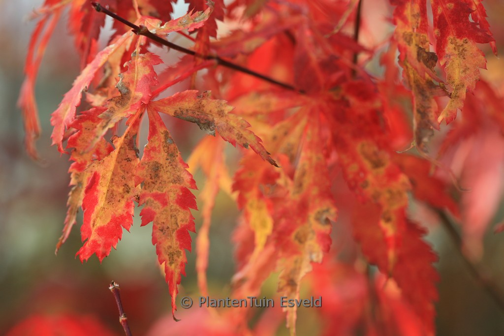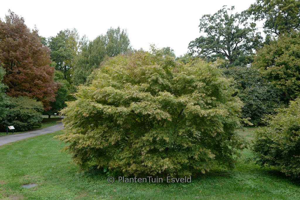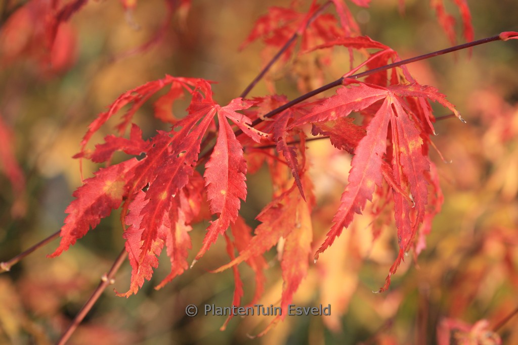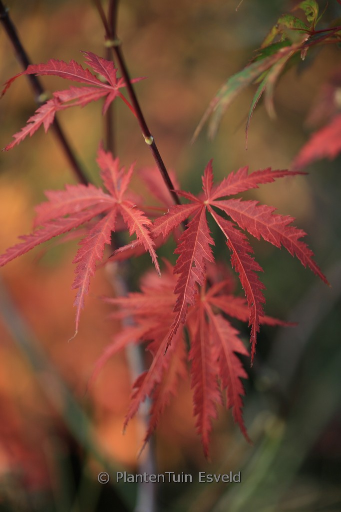 Japanse esdoorn met diep ingesneden blad De herfstkleur van deze roodbladige Japanse esdoorn is vaak oranjerood Het is geen Dissectum maar wel een esdoorn die bijna net zo breed wordt als hoog. De groeivorm is afwijkend van de meeste andere Japanse esdoorns. De hoogte na 10 jaar is 150cm. De bladkleur is warm bruinrood. De bloeiperiode is mei. Deze plant is goed winterhard. Aanbevolen aantal per vierkante meter : 1. Nederlandse naam : Japanse esdoorn . . Is aanwezig op de kwekerij. Kijk ook op de voorraadlijst op onze site.