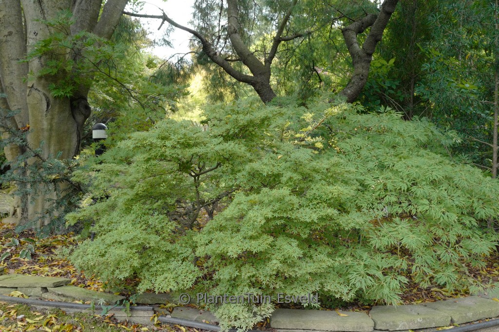 zeer kleinbladig struikje vormt een compacte bol, bonsai. De hoogte na 10 jaar is 1 meter. De bladkleur is groen. De bloeiperiode is mei. Deze plant is goed winterhard. Aanbevolen aantal per vierkante meter : 1. Nederlandse naam : Japanse esdoorn Mogelijk alternatief : Acer palmatum ‘Hanami-nishiki’. Belangrijkste verschil: Acer palmatum ‘Eimini’ iets opgaandere vorm. . Is aanwezig op de kwekerij. Kijk ook op de voorraadlijst op onze site.