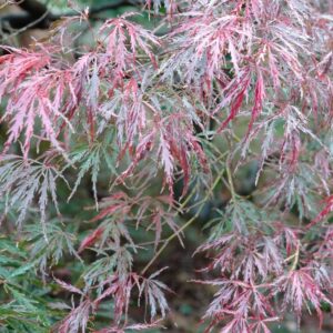 Japanse esdoorn met een paddestoelvormige groeiwijze Een cultivar uit de Dissectum groep met kantachtig fijn frisgroen blad en een uitstekende vitaliteit. Misschien niet de meest opvallendeDissectum cultivar, maar wel gewoon een heel goede en gezonde. De hoogte na 10 jaar is 200 cm. De bladkleur is groen met rode herfstkleur. De bloeiperiode is mei. Deze plant is goed winterhard. Aanbevolen aantal per vierkante meter : 1. Nederlandse naam : Japanse esdoorn . . Is aanwezig op de kwekerij. Kijk ook op de voorraadlijst op onze site.