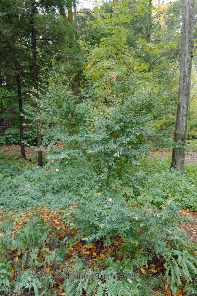 Sterk getand 5-lobbig blad Prachtige oranje-rode herfstkleur De bladvorm van deze Amerikaanse selectie is gemakkelijk herkenbaar aan de gegolfde en getande bladrand. De naam wordt eer aan gedaan. De groeivorm is opgaander dan gebruikelijk bij Japanse esdoorns. De hoogte na 10 jaar is 150 cm. De bladkleur is donkergroen. De bloeiperiode is april. Deze plant is goed winterhard. Aanbevolen aantal per vierkante meter : 1. Nederlandse naam : Japanse esdoorn . . Is aanwezig op de kwekerij. Kijk ook op de voorraadlijst op onze site.