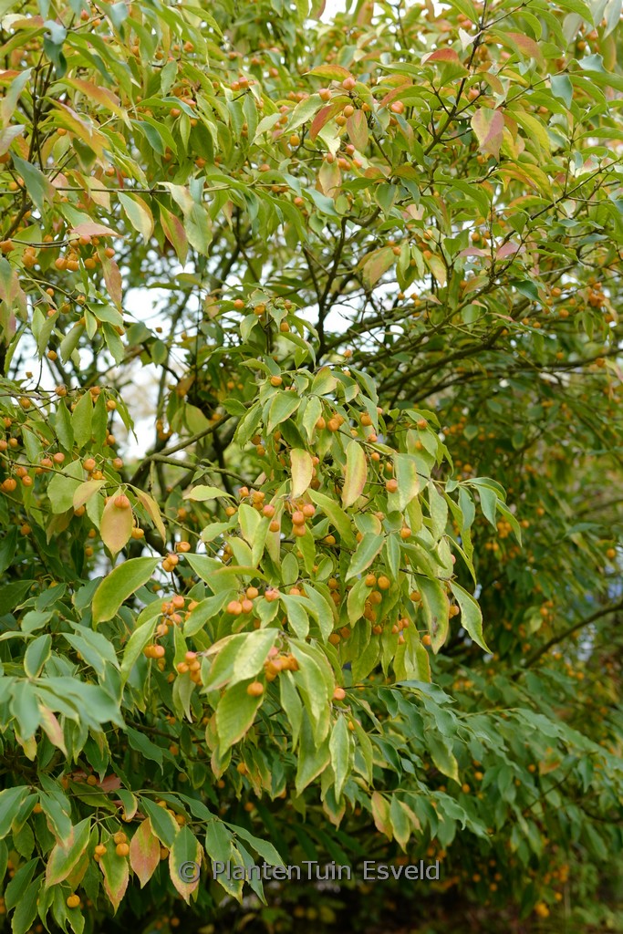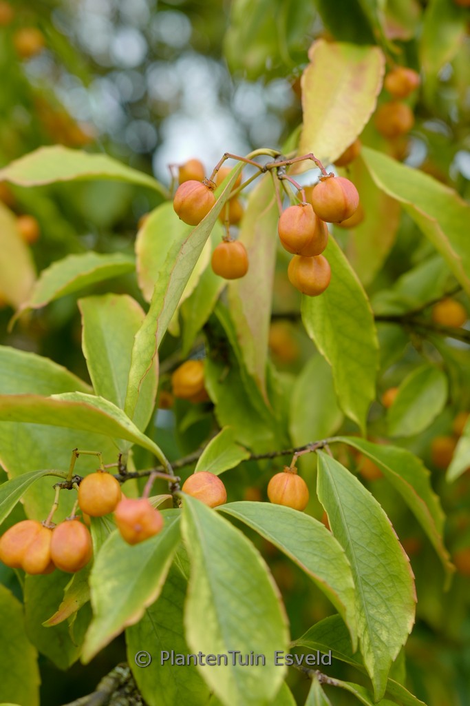 kardinaalshoed wintergroene struik met opvallende geeloranje vruchten. Het wintergroene blad is licht van kleur en daar, kan ik je verzekeren, zijn er niet zoveel van, wintergroene struiken met lichtgroen blad. Het kan op termijn een flinke struik, of zelfs klein boompje vormen. De hoogte na 10 jaar is 250 cm. De bloemkleur is geel. De bloeiperiode is oktober. Deze plant is goed winterhard. Nederlandse naam : Kardinaalsmuts . . Is aanwezig op de kwekerij. Kijk ook op de voorraadlijst op onze site.