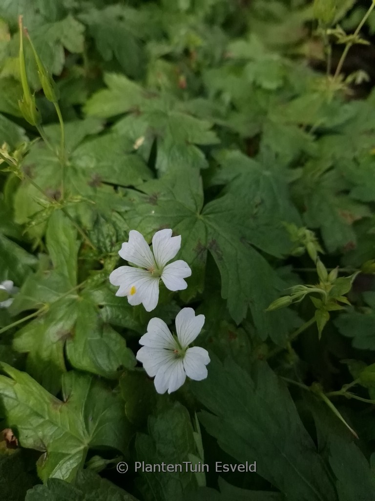 Mooie selectie van Coen Jansen; blijft ook in de zon wit. De gemiddelde hoogte is 45 cm. De bloemkleur is wit met blauwe meeldraden. De bloeiperiode is juni – augustus. Deze plant is zeer winterhard. Aanbevolen aantal per vierkante meter : 5. Dit artikel is slechts in kleine hoeveelheden beschikbaar en kan plotseling niet meer leverbaar blijken. Nederlandse naam : Basterd-ooievaarsbek . . Alleen op bestelling leverbaar. Levertijd minstens 1 week.