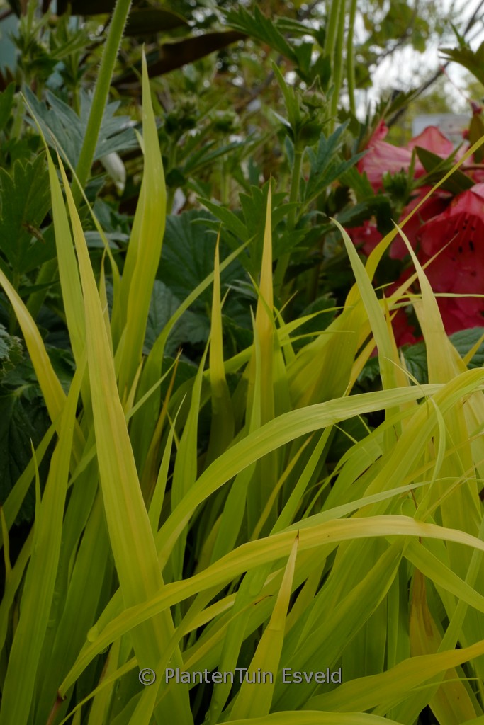 Volledig goudgeel blad; verdraagt geen middagzon. De gemiddelde hoogte is 40 cm. De bloemkleur is lichtgroen. De bloeiperiode is augustus – september. Deze plant is zeer winterhard. Aanbevolen aantal per vierkante meter : 7. Nederlandse naam : Japans berggras . . Alleen op bestelling leverbaar. Levertijd minstens 1 week.