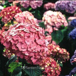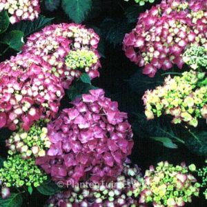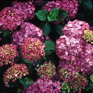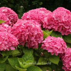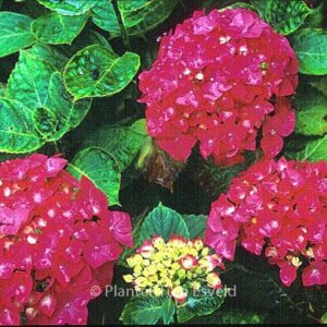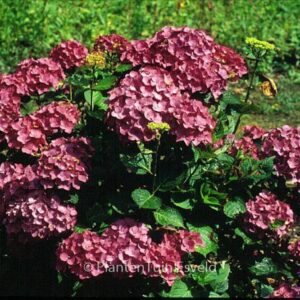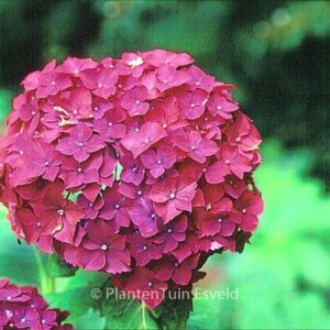 bolbloemige hortensia met vrij donkere takken. De hoogte na 10 jaar is 125 cm. De bloemkleur is roserood. De bloeiperiode is juli – september. Deze plant is zeer winterhard. Nederlandse naam : Boerenhortensia . . Alleen op bestelling leverbaar. Levertijd minstens 1 week.