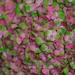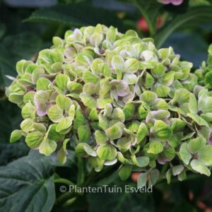 bolhortensia geschikt als snijbloem met groenrose bloemen. De hoogte na 10 jaar is 150 cm. De bloemkleur is groen met rose, herfst groen. De bloeiperiode is juli – september. Deze plant is zeer winterhard. Aanbevolen aantal per vierkante meter : 3. Nederlandse naam : Boerenhortensia . . Alleen op bestelling leverbaar. Levertijd minstens 1 week.