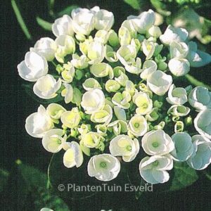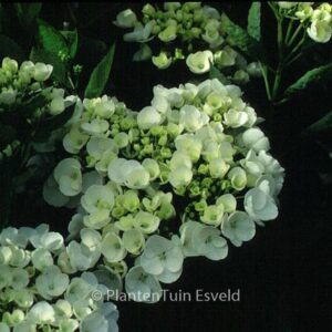 schermbloemige hortensia met grote halfgevulde bloemen Vermeerdering zonder licentie niet toegestaan. De hoogte na 10 jaar is 100 cm. De bloemkleur is wit. De bloeiperiode is juli – oktober. Deze plant is goed winterhard. Nederlandse naam : Boerenhortensia Mogelijk alternatief : Hydrangea macrophylla ‘Libelle’. Belangrijkste verschil: HETZELFDE, ZONDER LICENTIE. . Alleen op bestelling leverbaar. Levertijd minstens 1 week.