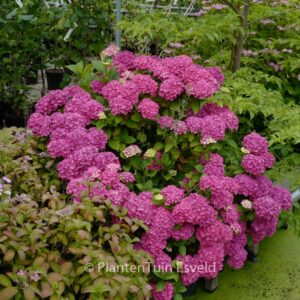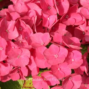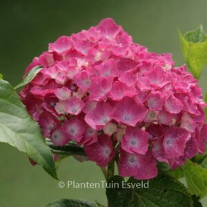 boerenhortensia met bol bloemen, kleurt naar donkergroen. De hoogte na 10 jaar is 1. 5 meter. De bloemkleur is roserood, groene herfstkleur. De bloeiperiode is juli – september. Deze plant is goed winterhard. Aanbevolen aantal per vierkante meter : 2. Nederlandse naam : Hortensia . . Alleen op bestelling leverbaar. Levertijd minstens 1 week.