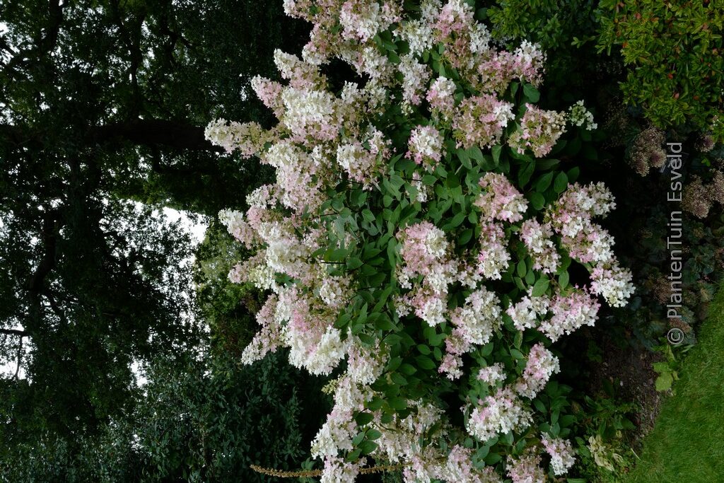 pluimhortensia die snel rood verkleurt tijdens de bloei en in de bloemkleur misschien wel een van de mooiste is van allemaal, maar de bloemstelen zijn wat zwak en daardoor kan de plant een beetje open vallen. Dat is dan weer jammer. De hoogte na 10 jaar is 350 cm. De bloemkleur is wit verkleurend naar rood. De bloeiperiode is augustus – oktober. Deze plant is zeer winterhard. Nederlandse naam : Pluimhortensia . . Alleen op bestelling leverbaar. Levertijd minstens 1 week.