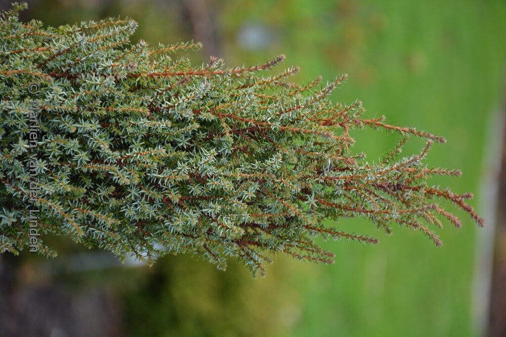 zuilvormige dwergvorm met een zeer compacte groeivorm Met een beetje goede wil kun je hier een mini cipresje in zien. Leuk verticaal accent in de wintertuin. Kan prima op arme zandgrond. De hoogte na 10 jaar is 125 cm. De naaldkleur is grijsgroen. Deze plant is zeer winterhard. Aanbevolen aantal per vierkante meter : 5. Nederlandse naam : Jeneverbes . Deze plant heeft de volgende onderscheiding: AGM, Award of Garden Merit, 1993. . Alleen op bestelling leverbaar. Levertijd minstens 1 week.