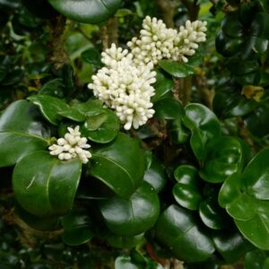 wintergroene dwergstruik met geurende bloemen. De hoogte na 10 jaar is 100 cm. De bloemkleur is wit. De bloeiperiode is juli – augustus. Deze plant is goed winterhard. Aanbevolen aantal per vierkante meter : 3. Nederlandse naam : Japanse liguster . . Alleen op bestelling leverbaar. Levertijd minstens 1 week.