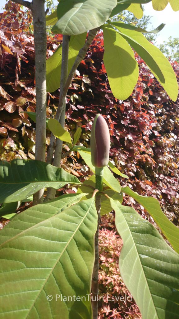 grootbladige boom zeer zeldzame soort Door de grote bladeren maakt deze winterharde boom een exotische, zelfs bijna tropische indruk. De bloemen geuren heerlijk. De hoogte na 10 jaar is 500 cm. De bloemkleur is creme. De bloeiperiode is juni. Deze plant is goed winterhard. Nederlandse naam : Chinese kransmagnolia . . Alleen op bestelling leverbaar. Levertijd minstens 1 week.