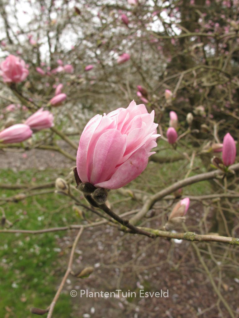 Stermagnolia met tussen de 20 en 30 bloemblaadjes!. De hoogte na 10 jaar is 2,5 m. De bloemkleur is lichtrose. De bloeiperiode is april – mei. Deze plant is goed winterhard. Aanbevolen aantal per vierkante meter : 1. Nederlandse naam : Stermagnolia . Deze plant heeft de volgende onderscheiding: AGM, Award of Garden Merit, 2012. . Alleen op bestelling leverbaar. Levertijd minstens 1 week.