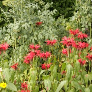 Bijzonder grote bloemen; standvast, robuust en goed groeiend. De gemiddelde hoogte is 1,2 m. De bloemkleur is scharlakenrood. De bloeiperiode is juni – augustus. Deze plant is zeer winterhard. Aanbevolen aantal per vierkante meter : 5. Nederlandse naam : Bergamotplant . . Alleen op bestelling leverbaar. Levertijd minstens 1 week.