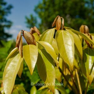 wintergroene struik met grijsgroen blad dat in het voorjaar goudkleurig uitloopt. Verrassend winterhard. Bij onze plantenvrienden van kwekerij Rein en Mark Bulk staat de Neolitsea al jaren buiten zonder enig probleem. Uit de familie van de Laurus. De hoogte na 10 jaar is 4 meter. De bloemkleur is bleekgeel. De bloeiperiode is september – oktober. Deze plant is goed winterhard. . . Alleen op bestelling leverbaar. Levertijd minstens 1 week.