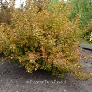 Blad eerst geel; in de zomer oranje/rood; herfstkl. paars. De hoogte na 10 jaar is 2 meter. De bloemkleur is wit. De bloeiperiode is mei – juni. Deze plant is zeer winterhard. Aanbevolen aantal per vierkante meter : 1. Nederlandse naam : Sneeuwbalspirea . . Alleen op bestelling leverbaar. Levertijd minstens 1 week.