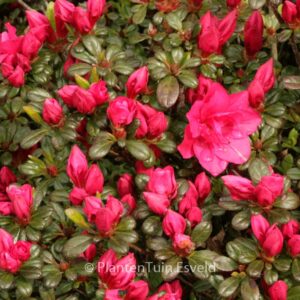 kleinbloemige Japanse azalea voor op een zure grond. Het winterblad verkleurt naar wijnrood, maar wordt in het voorjaar weer gewoon groen. De hoogte na 10 jaar is 80 cm. De bloemkleur is roserood. De bloeiperiode is mei. Deze plant is zeer winterhard. Aanbevolen aantal per vierkante meter : 3. Nederlandse naam : Rhododendron . Deze plant heeft de volgende onderscheiding: AGM, Award of Garden Merit, 2002. . Alleen op bestelling leverbaar. Levertijd minstens 1 week.