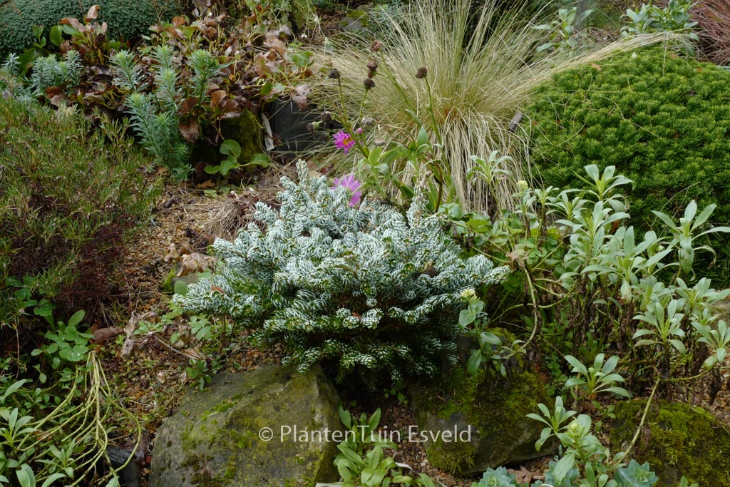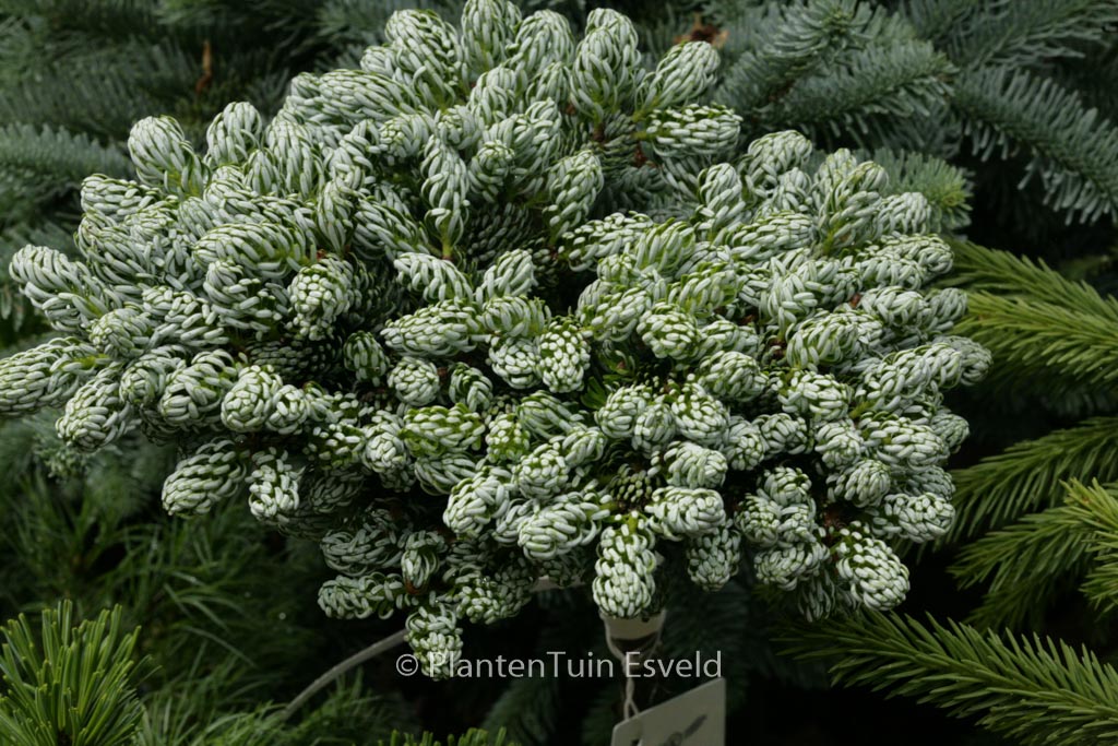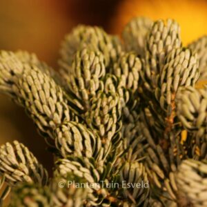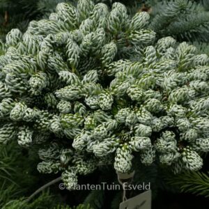 Dwergvorm met zilverblauwe naalden en verdraaide takjes. De hoogte na 10 jaar is 40 cm. Deze plant is zeer winterhard. Nederlandse naam : Koreaanse zilverspar . Deze plant heeft de volgende onderscheiding: AGM, Award of Garden Merit, 2012, tevens Gouden Medaille Vakbeurs Groot Groen Plus 2009. . Alleen op bestelling leverbaar. Levertijd minstens 1 week.