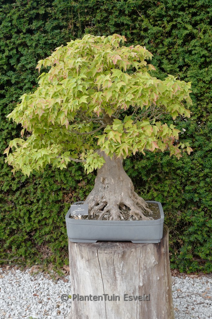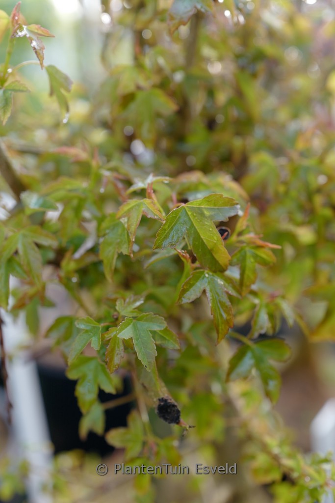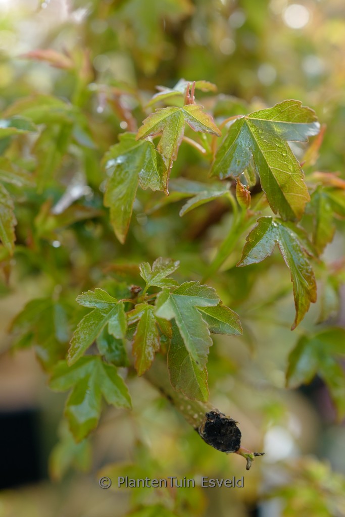 boomachtige struik die geschikt is voor bonsai. Luchtverontreiniging deert Acer buergerianum niet of nauwelijks, niet voor niets staan de straten van Beijing er vol mee. Leuk is het drielobbige blad, de vaak aardige herfstkleur en de verdraagzaamheid voor snoei. De hoogte na 10 jaar is 500 cm. De bladkleur is frisgroen. De bloeiperiode is april – mei. Deze plant is goed winterhard. Aanbevolen aantal per vierkante meter : 1. Nederlandse naam : Drietandesdoorn Mogelijk alternatief : Acer buergerianum ‘Shirley Debacq’. Belangrijkste verschil: Acer buergerianum ‘Shirley Debacq’ heeft meer opgaande groeivorm. . Alleen op bestelling leverbaar. Levertijd minstens 1 week.