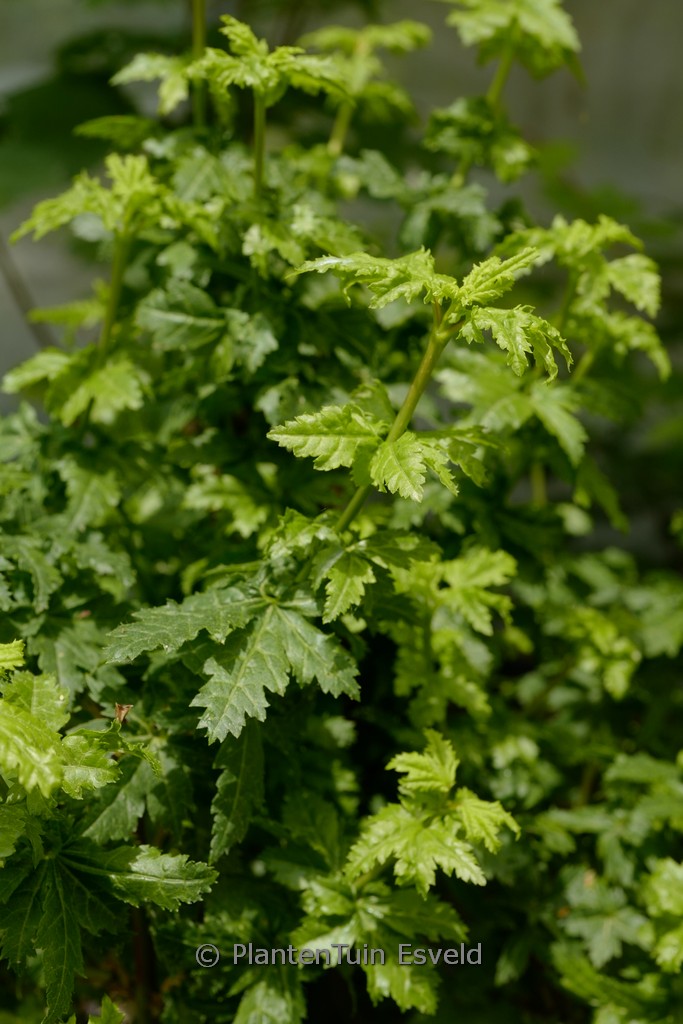 Kleinbladige, geelgroene dwergvorm; gevonden als heksenbezem. De hoogte na 10 jaar is 50 cm. De bladkleur is in de herfst oranje-bruinrood. De bloeiperiode is mei. Deze plant is goed winterhard. Aanbevolen aantal per vierkante meter : 3. Nederlandse naam : Wijnstokesdoorn . . Alleen op bestelling leverbaar. Levertijd minstens 1 week.