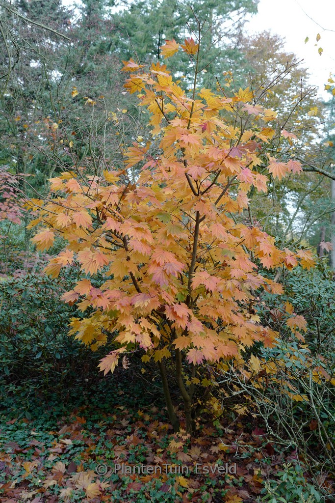 hoge brede struik met een vlammende oranjerode herfstkleur. De hoogte na 10 jaar is 4 meter. De bladkleur is groen. De bloeiperiode is mei. Deze plant is zeer winterhard. Aanbevolen aantal per vierkante meter : 1. Nederlandse naam : Esdoorn . Deze plant heeft de volgende onderscheiding: AGM, Award of Garden Merit, 1993. . Alleen op bestelling leverbaar. Levertijd minstens 1 week.