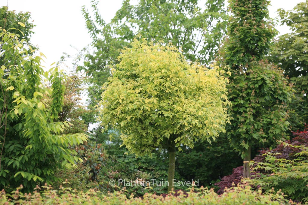 geelbonte vederesdoorn Ook in zwaardere maten leverbaar, prijzen op aanvraag. De hoogte na 10 jaar is 7 meter. De bladkleur is frisgroen met een gele rand. De bloeiperiode is mei. Deze plant is zeer winterhard. Aanbevolen aantal per vierkante meter : 1. Nederlandse naam : Vederesdoorn . . Alleen op bestelling leverbaar. Levertijd minstens 1 week.