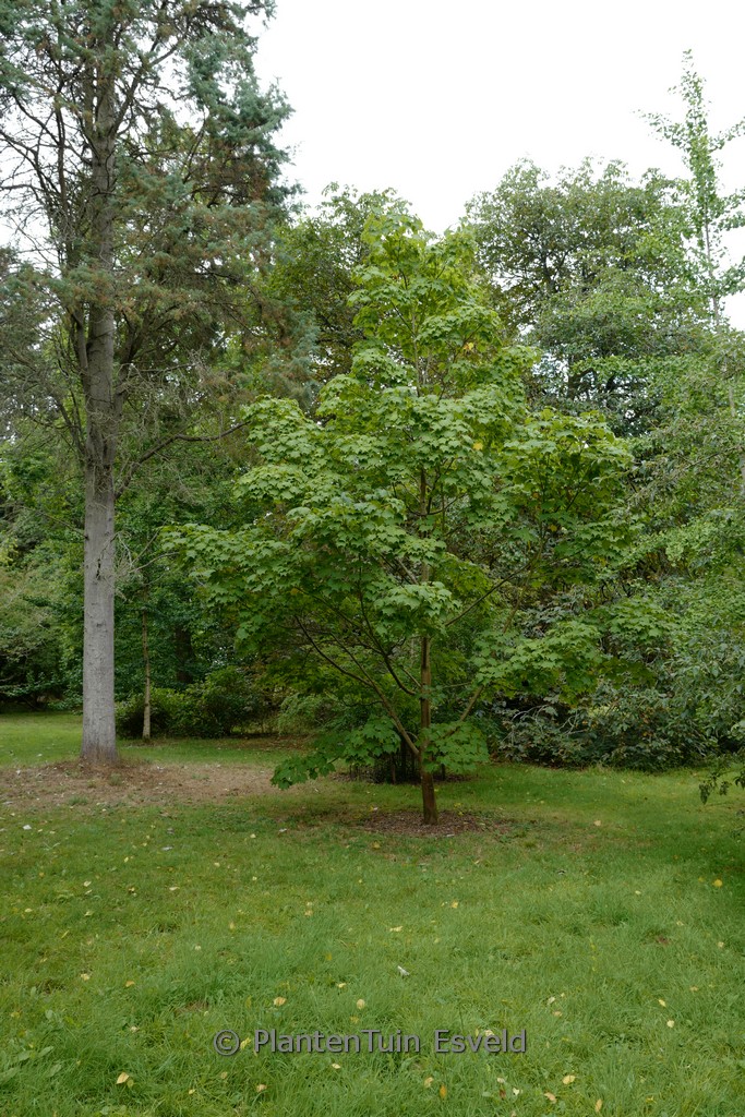 zeldzame kleine boom, groot lichtgroen blad,grote bloemen Het opvallendste aan deze zeldzame Japanse esdoornboom zijn de grote trossen zachtgele bloemen. Echt fraai. De vruchten zijn vergelijkbaar groot, grasgroene helikoptertjes. Het blad oogt wat grof, maar sympathieker gezegd stoer. De hoogte na 10 jaar is 5 meter. De bladkleur is groen. De bloeiperiode is mei. Deze plant is zeer winterhard. Aanbevolen aantal per vierkante meter : 1. Nederlandse naam : Nippon-esdoorn . . Is aanwezig op de kwekerij. Kijk ook op de voorraadlijst op onze site.