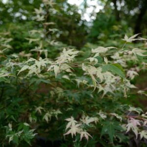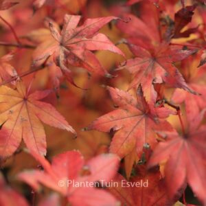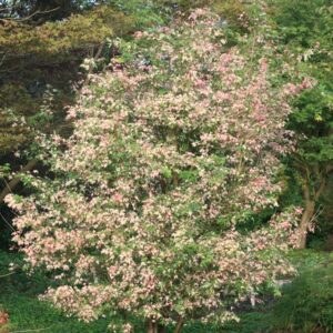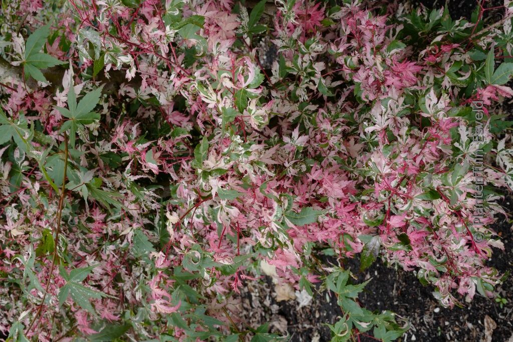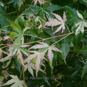 slank opgaande struik met gevlekt blad, rode wintertakken De betekenis van de Japanse naam is ‘zwaan in de opgaande zon’. De hoogte na 10 jaar is 350 cm 6. De bladkleur is groen met wit en helderrose. De bloeiperiode is mei. Deze plant is goed winterhard. Aanbevolen aantal per vierkante meter : 1. Nederlandse naam : Japanse esdoorn Mogelijke alternatieven : Acer palmatum ‘Oridono-nishiki’. Belangrijkste verschil: Acer palmatum ‘Oridono-nishiki’ is bonter, verloopt minder. Acer palmatum ‘Rokugatsu-en-nishiki’. Belangrijkste verschil: Acer palmatum ‘Rokugatsu-en-nishiki’ groeit iets rustiger. . Alleen op bestelling leverbaar. Levertijd minstens 1 week.