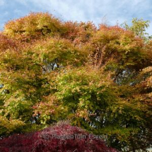 struik met koraalrood hout en prachtige goudgele herfstkleur. De hoogte na 10 jaar is 4 meter. De bladkleur is frisgroen. De bloeiperiode is mei. Deze plant is zeer winterhard. Aanbevolen aantal per vierkante meter : 1. Nederlandse naam : Japanse esdoorn Mogelijke alternatieven : Acer palmatum ‘Eddisbury’. Belangrijkste verschil: Acer palmatum ‘Eddisbury’ lichter rood, snellere groei. Acer palmatum ‘Japanese Sunrise’. Belangrijkste verschil: Acer palmatum ‘Beni-kawa’ donkerder rode takken. Acer palmatum ‘Red Wood’. Belangrijkste verschil: Acer palmatum ‘Beni-kawa’ donkerder rode stam. Acer palmatum ‘Sango-kaku’. Belangrijkste verschil: Acer palmatum ‘Beni-kawa’ rodere takken. . Is aanwezig op de kwekerij. Kijk ook op de voorraadlijst op onze site. .