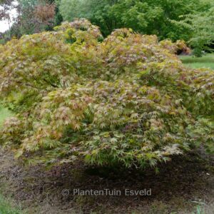 breedgroeiende struik vrij grote bladeren Betekenis van de Japanse naam: ‘duizendjarige berg’. Chitose-yama is een van die traditionele Japanse cultivars die worden geroemd om hun mooie herfstkleur, in het geval van Chitose-yama meestal felrood. De hoogte na 10 jaar is 300 cm. De bladkleur is bruin blad. De bloeiperiode is mei. Deze plant is zeer winterhard. Aanbevolen aantal per vierkante meter : 1. Nederlandse naam : Japanse esdoorn Mogelijk alternatief : Acer palmatum ‘Ezo-nishiki’. Belangrijkste verschil: Acer palmatum ‘Ezo-nishiki’ lichter rood in zomer. Deze plant heeft de volgende onderscheiding: AGM, Award of Garden Merit, 1993. . Alleen op bestelling leverbaar. Levertijd minstens 1 week.
