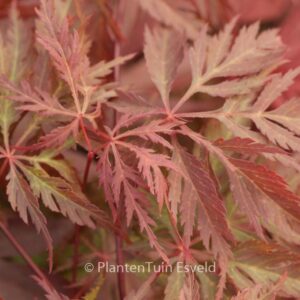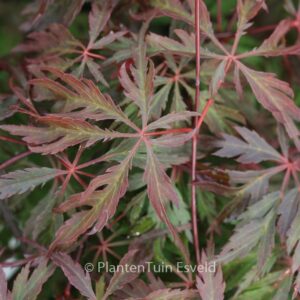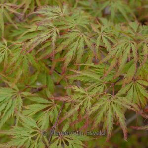 Koreaanse Dissectum selectie, door onze kwekerij geintroduceerd en van de wat ongelukkige naam voorzien. De naam was eigenlijk bedoeld als aanduiding van de herkomst, maar zoals dat soms gaat, hij bleef hangen. Dai heeft een gevarieerde bladkleur, bruin, groen een vleugje rood, van alles en nog wat. Niet verkeerd kortom. De hoogte na 10 jaar is 1. 25meter. De bladkleur is groen. De bloeiperiode is mei. Deze plant is goed winterhard. Aanbevolen aantal per vierkante meter : 1. Nederlandse naam : Japanse esdoorn . . Is aanwezig op de kwekerij. Kijk ook op de voorraadlijst op onze site.