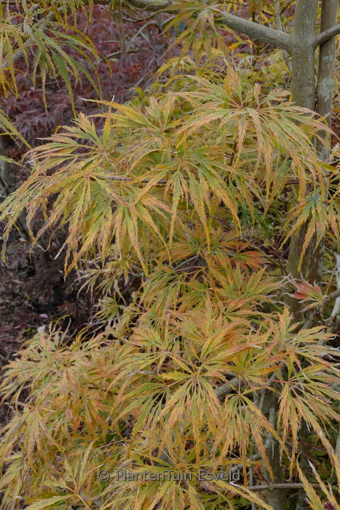 Japanse esdoorn met chocolade kleurig voorjaarsblad Een selectie van voormalig medewerker Frits van der Horst die hij genoemd heeft naar zijn dochter Emma. Deze Dissectum heeft diep ingesneden kantachtig blad, maar wel tamelijk grof. De herfstkleur is vaak opvallend oranje. Een vergeten, maar waardevolle selectie. De hoogte na 10 jaar is 2 meter. De bladkleur is bruin met oranje herfstkleur. De bloeiperiode is mei. Deze plant is goed winterhard. Aanbevolen aantal per vierkante meter : 1. Nederlandse naam : Japanse esdoorn Mogelijke alternatieven : Acer palmatum ‘Alloys’. Belangrijkste verschil: Acer palmatum ‘Emma’ heeft donkerder bruin blad. Acer palmatum ‘Julian’. Belangrijkste verschil: Acer palmatum ‘Julian’ iets donkerder bruin en hoger. . Is aanwezig op de kwekerij. Kijk ook op de voorraadlijst op onze site.