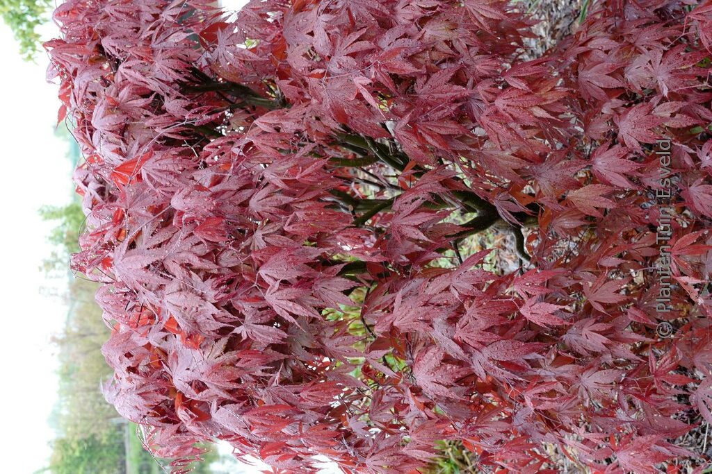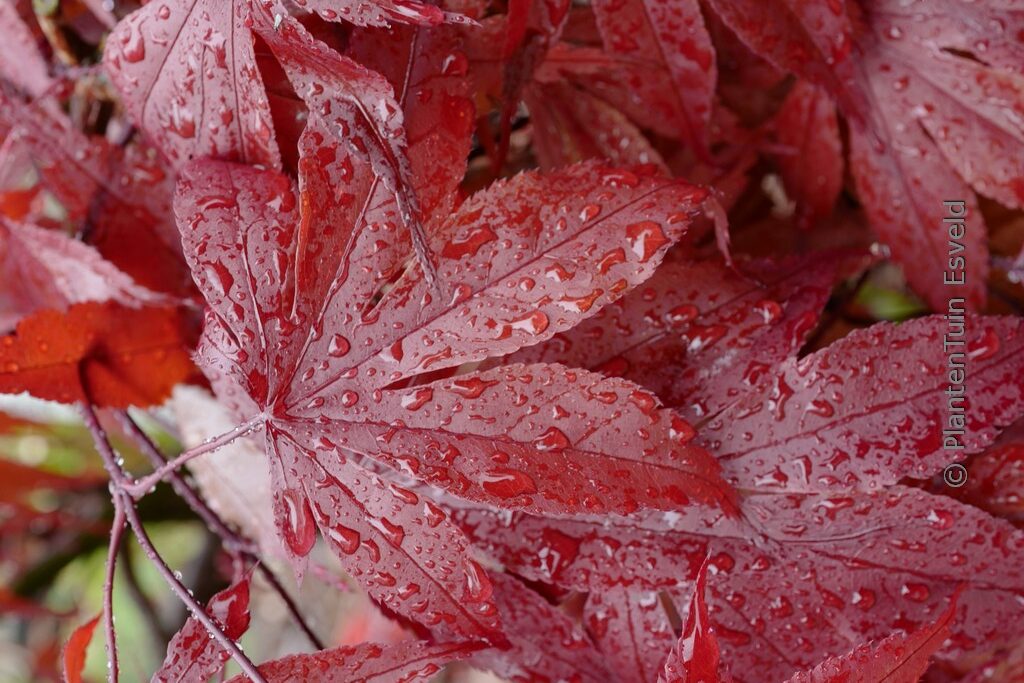 roodbladige Japanse esdoorn In de Verenigde Staten wordt deze cultivar met name geprezen over zijn kleurvastheid ook in de zuidelijke staten. Ook benoemen de Amerikaanse websites zijn ongevoeligheid voor zonnebrand. Allemaal goed nieuws lijkt me, ook al speelt dat bij ons wat minder. De hoogte na 10 jaar is 250 cm. De bladkleur is rood. De bloeiperiode is mei. Deze plant is goed winterhard. Aanbevolen aantal per vierkante meter : 1. Nederlandse naam : Japanse esdoorn . . Alleen op bestelling leverbaar. Levertijd minstens 1 week.