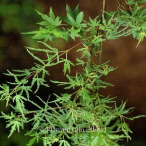 Fijnbladige Jap. esdoorn rustige groei, geschikt voor bonsai. De hoogte na 10 jaar is 200 cm. De bladkleur is groen. De bloeiperiode is mei. Deze plant is goed winterhard. Aanbevolen aantal per vierkante meter : 1. Nederlandse naam : Japanse esdoorn . . Alleen op bestelling leverbaar. Levertijd minstens 1 week.