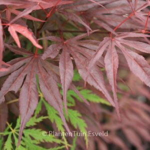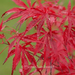 smalbladige Japanse esdoorn. De hoogte na 10 jaar is 150 cm. De bladkleur is rood. De bloeiperiode is mei. Deze plant is goed winterhard. Aanbevolen aantal per vierkante meter : 1. Nederlandse naam : Japanse esdoorn . Deze plant heeft de volgende onderscheiding: Gouden Medaille Vakbeurs Groot Groen Plus 2005. . Alleen op bestelling leverbaar. Levertijd minstens 1 week.
