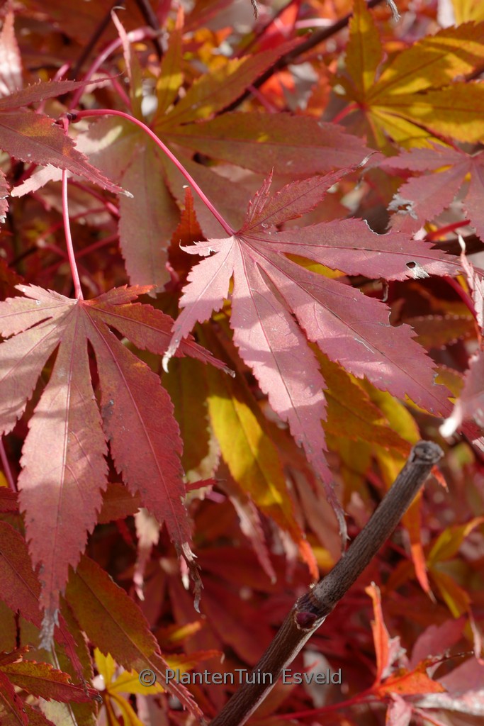 bronsbladig, groene stam diep ingesneden bladeren met de vorm van de Matsumurae groep. Tot de basis ingesneden, maar niet zo fijn kantachtig als bij de Dissectums. De jonge takken zijn groen en steken mooi af tegen het voorjaarsblad. De hoogte na 10 jaar is 3 meter. De bladkleur is bronsbruin. De bloeiperiode is mei. Deze plant is goed winterhard. Nederlandse naam : Japanse esdoorn . . Is aanwezig op de kwekerij. Kijk ook op de voorraadlijst op onze site.