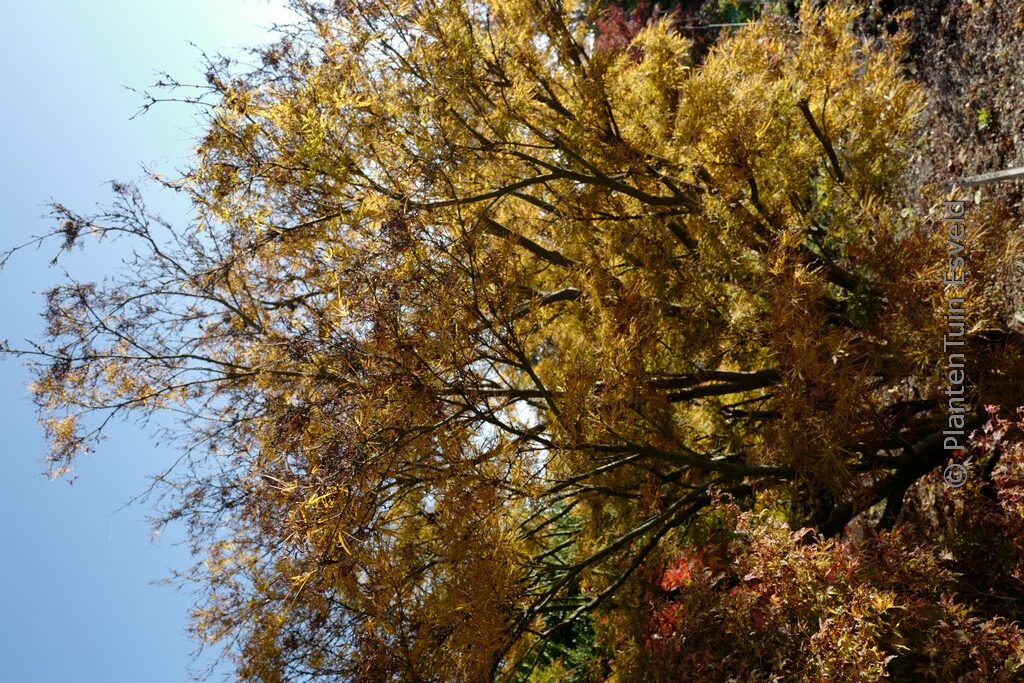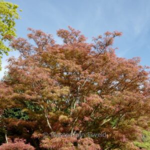 dwergvorm met lijnvormig blad, goede oranje herfstkleur Een introductie van onze kwekerij, gevonden in zaailingen in de gelijknamige tuin in Italie. Captain McEacharn, de eigenaar van de tuin was een groot esdoornliefhebber en in zijn tuin waren dan ook veel esdoorns te vinden. Een mooie vorm uit de Linearilobum groep. De hoogte na 10 jaar is 1. 5 meter. De bladkleur is bronsgroen. De bloeiperiode is mei. Deze plant is zeer winterhard. Aanbevolen aantal per vierkante meter : 1. Nederlandse naam : Japanse esdoorn Mogelijke alternatieven : Acer palmatum ‘Atrolineare’. Belangrijkste verschil: Acer palmatum ‘Atrolineare’ iets roder blad. Acer palmatum ‘Enkan’. Belangrijkste verschil: Acer palmatum ‘Enkan’ veel roder blad. Acer palmatum ‘Red Pygmy’. Belangrijkste verschil: Acer palmatum ‘Red Pygmy’ heeft roder blad. Deze plant heeft de volgende onderscheiding: AGM, Award of Garden Merit, 2012. Deze soort is in 1967 door ons geintroduceerd als nieuwigheid. 1967. . Alleen op bestelling leverbaar. Levertijd minstens 1 week.