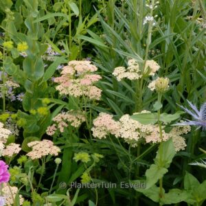Goede snijbloem voor alle grondsoorten, zonnige standplaats. De gemiddelde hoogte is 60 cm. De bloemkleur is zalmrose. De bloeiperiode is juni – augustus. Deze plant is goed winterhard. Aanbevolen aantal per vierkante meter : 7. Nederlandse naam : Gewoon duizendblad . . Alleen op bestelling leverbaar. Levertijd minstens 1 week.