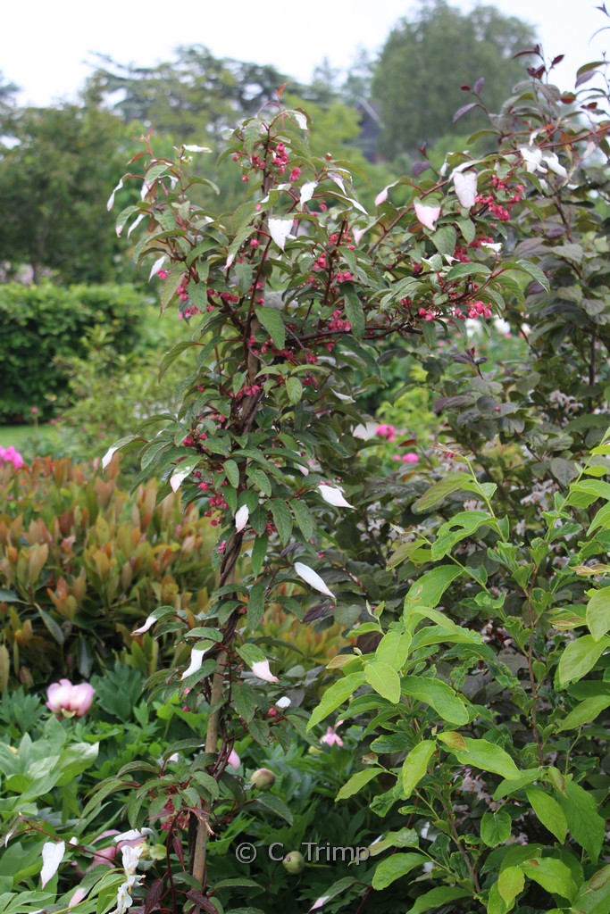 kleinbladige kiwi met aan de bladtip opvallende witte punten. Ziet er uit als de bescheiden kleinbladige versie van de bekendere Actinidia kolomikta, maar dan met mooiere bloemen. Vruchten hebben we er nog niet aan gezien, maar dat kan een kwestie van tijd zijn. De hoogte na 10 jaar is 300 cm. De bloemkleur is rose. De bloeiperiode is mei – juni. Deze plant is matig winterhard. Aanbevolen aantal per vierkante meter : 1. Nederlandse naam : Kiwi . . Is aanwezig op de kwekerij. Kijk ook op de voorraadlijst op onze site.