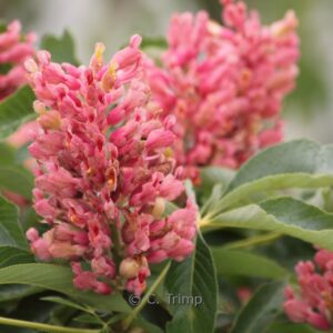dwergkastanje vormt een bescheiden struik met bijzondere rode en gele bloemen. In het voorjaar is het blad warm bronsbruin en later gewoon groen. De hoogte na 10 jaar is 4m. De bloemkleur is geeloranje. De bloeiperiode is april. Deze plant is goed winterhard. Aanbevolen aantal per vierkante meter : 1. Nederlandse naam : Rode pavia . . Is aanwezig op de kwekerij. Kijk ook op de voorraadlijst op onze site. .