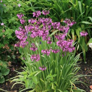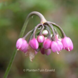 Amerikaans sieruitje met hangende bloeischermpjes. Bloemetjes met uitstekende meeldraden. Lange bloeitijd. Van origine uit Noord -Amerika. Blad blijft lang mooi. De gemiddelde hoogte is 35 cm. De bloemkleur is lila-rose. De bloeiperiode is juni – juli. Deze plant is goed winterhard. Aanbevolen aantal per vierkante meter : 9. Nederlandse naam : Amerikaans look . . Alleen op bestelling leverbaar. Levertijd minstens 1 week.