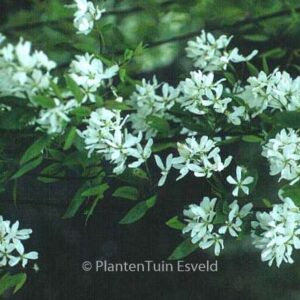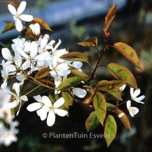 grootbloemige krent prachtige bloeirijke selectie. De hoogte na 10 jaar is 4m. De bloemkleur is wit. De bloeiperiode is april – mei. Deze plant is zeer winterhard. Aanbevolen aantal per vierkante meter : 1. Nederlandse naam : Krentenboompje . . Alleen op bestelling leverbaar. Levertijd minstens 1 week.