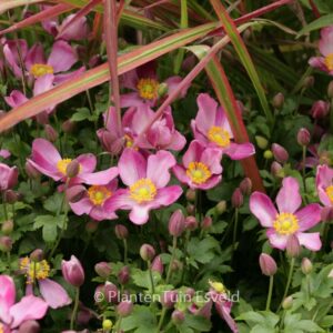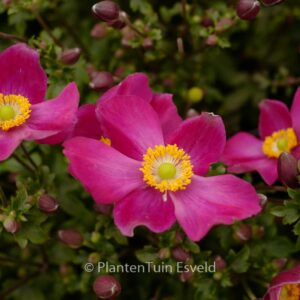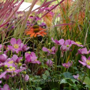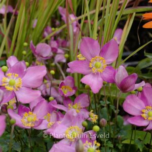 Herfstanemoon die vrij laag blijft. Geschikt voor bordera nd. Nieuw soort dat lang en uitbundig bloeit. Uitgebloeid ook mooi metal die kleine zaadhoofdjes. Humusrijke niet te droge grond is favoriet. De gemiddelde hoogte is 45 cm. De bloemkleur is donkerrose/rood. De bloeiperiode is augustus – oktober. Deze plant is goed winterhard. Aanbevolen aantal per vierkante meter : 7. Dit artikel is slechts in kleine hoeveelheden beschikbaar en kan plotseling niet meer leverbaar blijken. Nederlandse naam : Japanse herfstanemoon . . Alleen op bestelling leverbaar. Levertijd minstens 1 week.