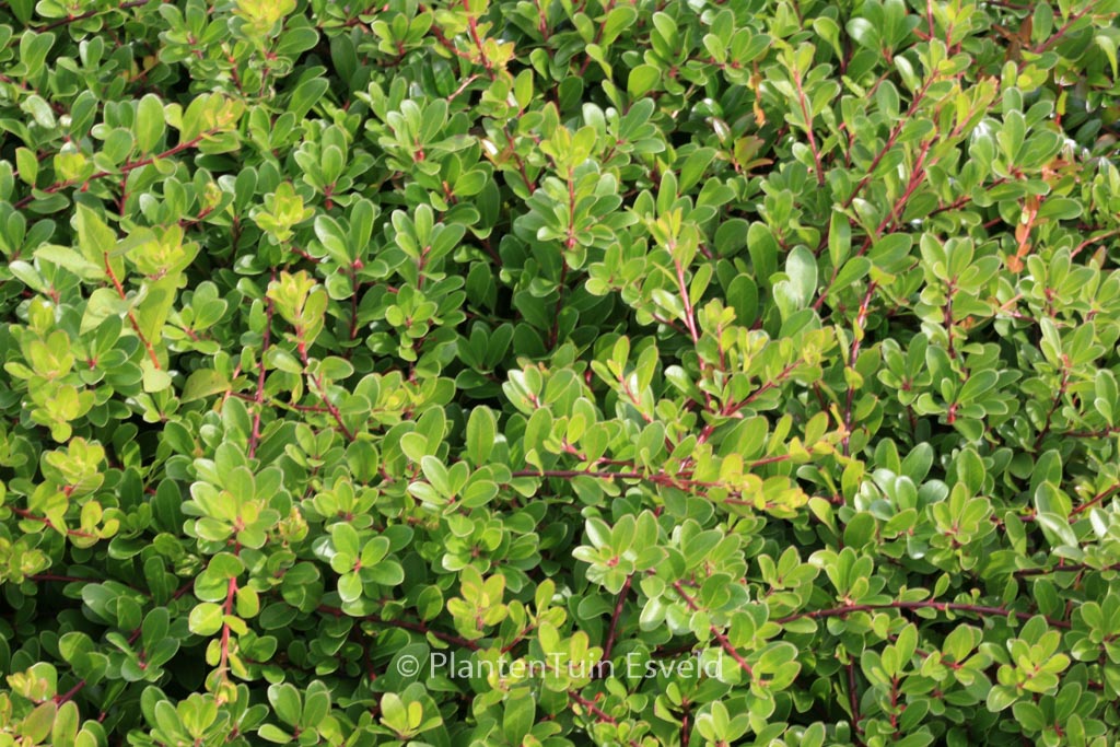 Kruipende berendruif met rode vruchten Deze zeldzame inheemse plant komt nog maar spaarzaam voor, maar in de buurt van Apeldoorn ken ik nog een veldje. Ze groeien daar op een wat vochtig heide terrein en gelukkig behoorlijk succesvol. Radiant is een goede gezonde selectie. De hoogte na 10 jaar is 15 cm. De bloemkleur is wit. De bloeiperiode is april. Deze plant is zeer winterhard. Nederlandse naam : Berendruif Mogelijk alternatief : Arctostaphylos uva-ursi. Belangrijkste verschil: Arctostaphylos uva-ursi ‘Radiant’ iets vitaler. . Is aanwezig op de kwekerij. Kijk ook op de voorraadlijst op onze site.