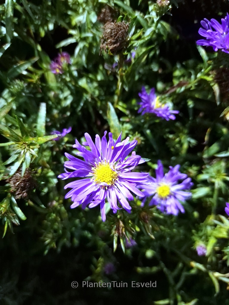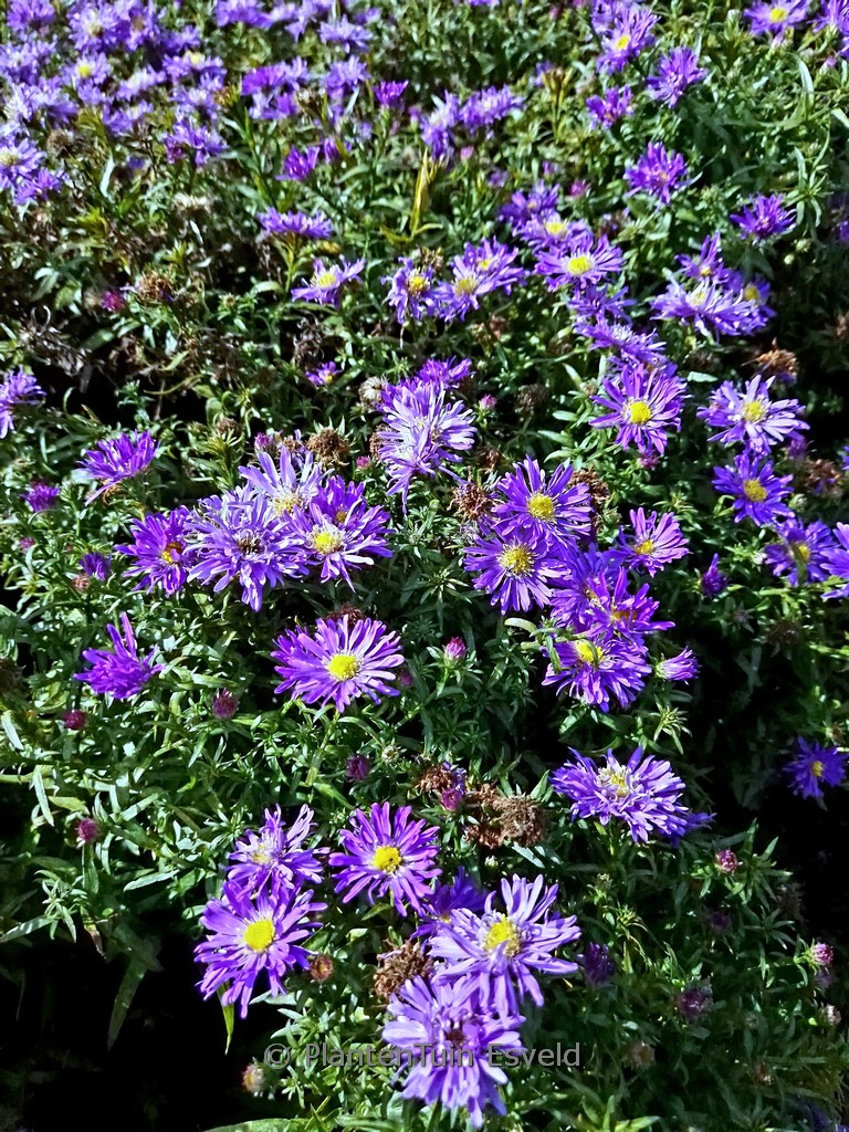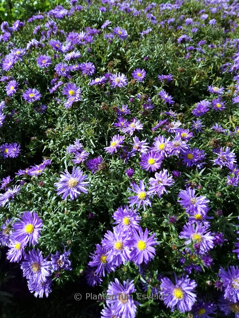 Rijkbloeiende dumosus- hybride, vormt nette kussentjes. De gemiddelde hoogte is 45 cm. De bloemkleur is donkerpaars met geel centrum. De bloeiperiode is september – oktober. Deze plant is zeer winterhard. Aanbevolen aantal per vierkante meter : 7. Dit artikel is slechts in kleine hoeveelheden beschikbaar en kan plotseling niet meer leverbaar blijken. Nederlandse naam : Aster . . Alleen op bestelling leverbaar. Levertijd minstens 1 week.