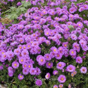 In grotere groepen toepasbaar. De gemiddelde hoogte is 30 cm. De bloemkleur is purpur. De bloeiperiode is augustus – oktober. Deze plant is goed winterhard. Aanbevolen aantal per vierkante meter : 7. Nederlandse naam : Kussenaster . . Alleen op bestelling leverbaar. Levertijd minstens 1 week.