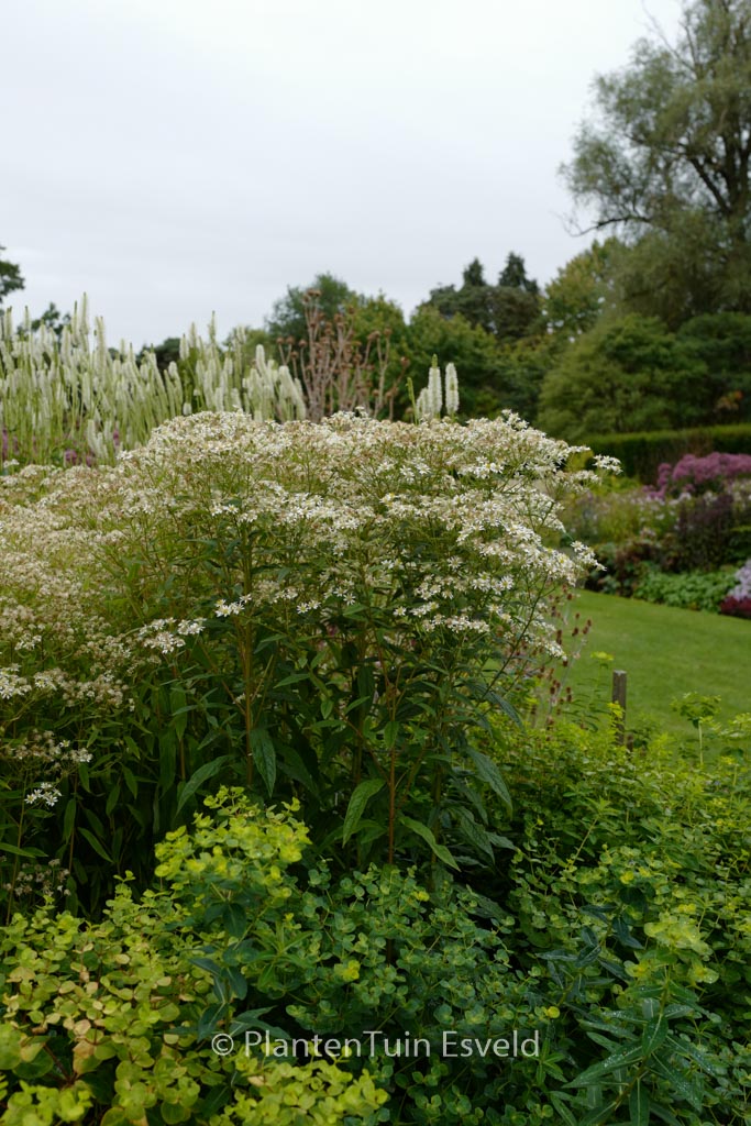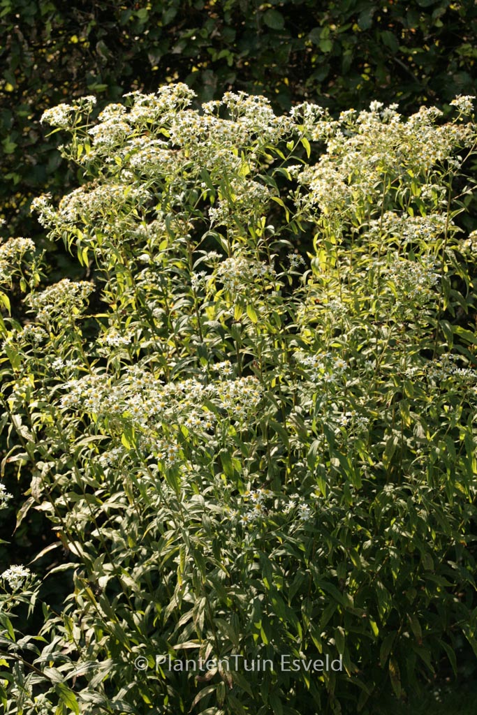 Vlinder en bijenplant, ook voor droge standplaats. De gemiddelde hoogte is 100 cm. De bloemkleur is wit. De bloeiperiode is september – oktober. Deze plant is goed winterhard. Aanbevolen aantal per vierkante meter : 7. Nederlandse naam : Aster . . Alleen op bestelling leverbaar. Levertijd minstens 1 week.