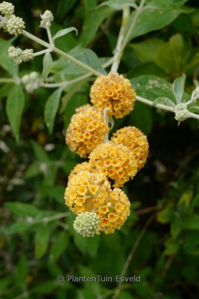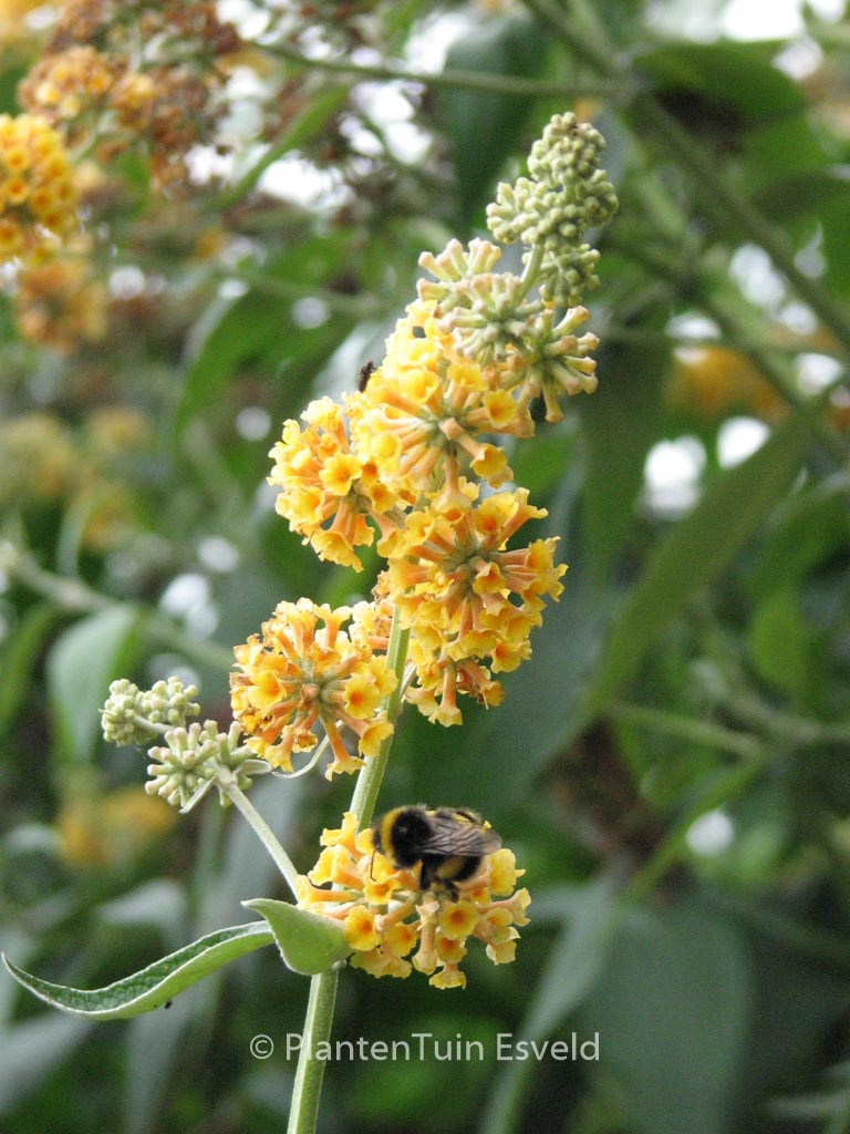 geelbloeiende vlinder struik met een onstuimige groeikracht, maar gelukkig kan deze ongewone vlinderstruik net zo goed tegen snoei als zijn gewonere broertjes. De geeloranje bloemen trekken overigens net zo enthousiast vlinders aan als de Buddleja davidii. De hoogte na 10 jaar is 250 cm. De bloemkleur is geel. De bloeiperiode is juli – september. Deze plant is goed winterhard. Nederlandse naam : Vlinderstruik . . Alleen op bestelling leverbaar. Levertijd minstens 1 week.