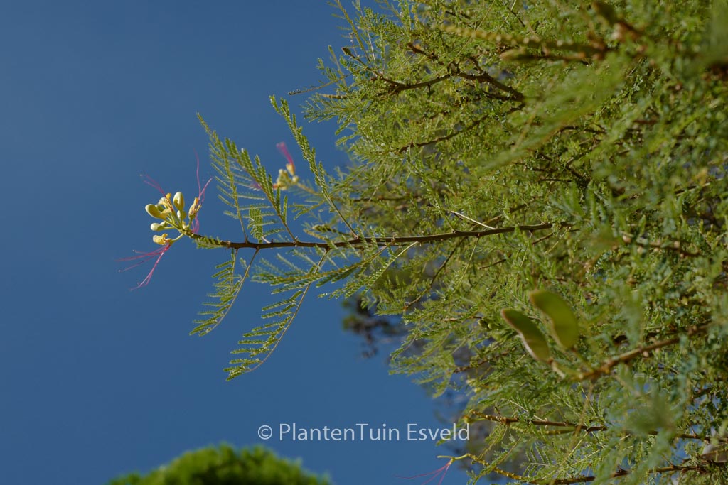 Paradijsvogelstruik met exotische bloemen en geveerd blad. De hoogte na 10 jaar is 3 meter. De bloemkleur is geel en rood. De bloeiperiode is mei – juni. Deze plant is matig winterhard. Nederlandse naam : Paradijsvogelstruik . . Alleen op bestelling leverbaar. Levertijd minstens 1 week.