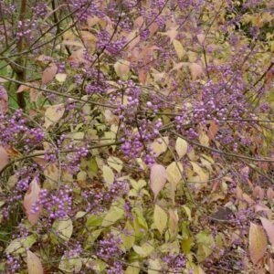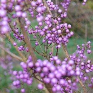 Koreaanse Callicarpa opvallende winterbessen. De hoogte na 10 jaar is 200 cm. De beskleur is paars. De besperiode is september – november. Deze plant is zeer winterhard. . . Alleen op bestelling leverbaar. Levertijd minstens 1 week.